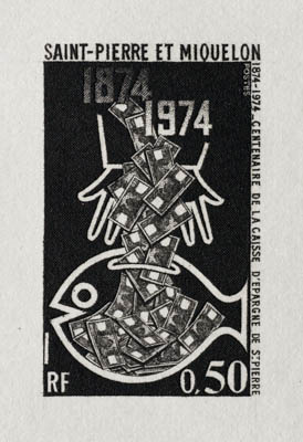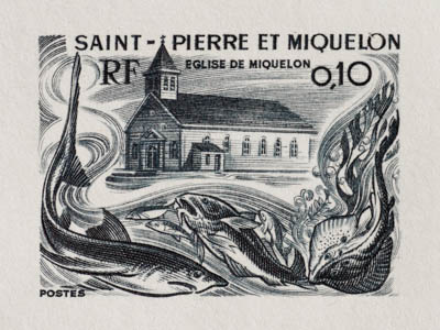 St. Pierre & Miquelon artist's proofs - 1974 (2) bank and churches